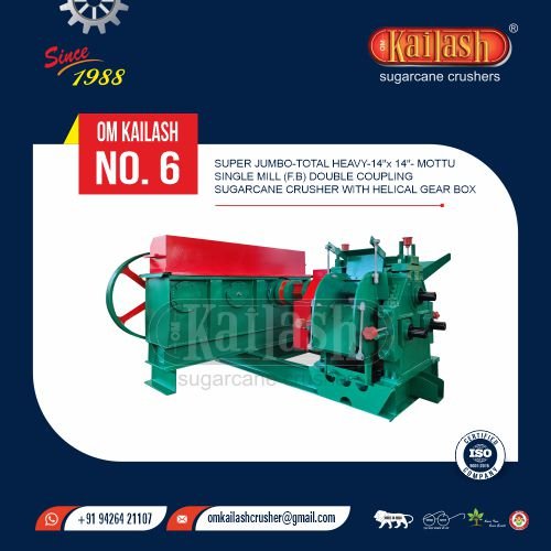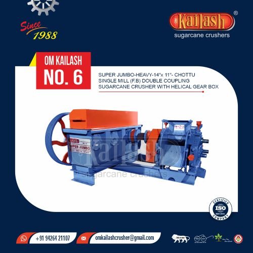 Super jumbo Heavy - 14" x 11" - Chottu Single Mill - (F.B) Double Coupling Sugarcane Crusher With Helical Gear Box