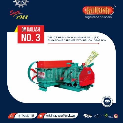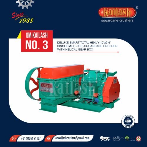 Deluxe Smart Total Heavy - 10" x 9½" - Single Mill - (F.B) Sugarcane Crusher With Helical Gear Box