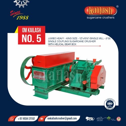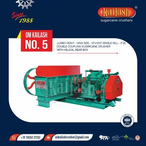 jumbo Heavy - King Size - 12" x 10½" - Single Mill - (F.B) Double Coupling Sugarcane Crusher With Helical Gear Box