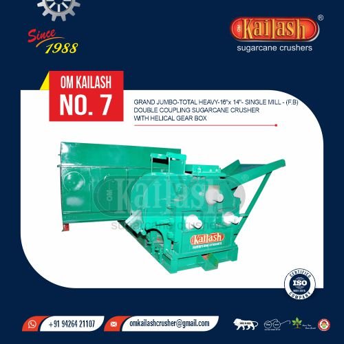Grand Jumbo Total Heavy - 16" x 14"" - Single Mill - (F.B) Double Coupling Sugarcane Crusher With Helical Gear Box