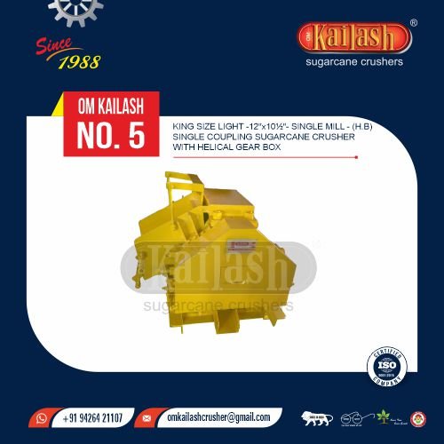 King Size Light - 12" x 10½"" - Single Mill - (H.B) Single Coupling Sugarcane Crusher With Helical Gear Box