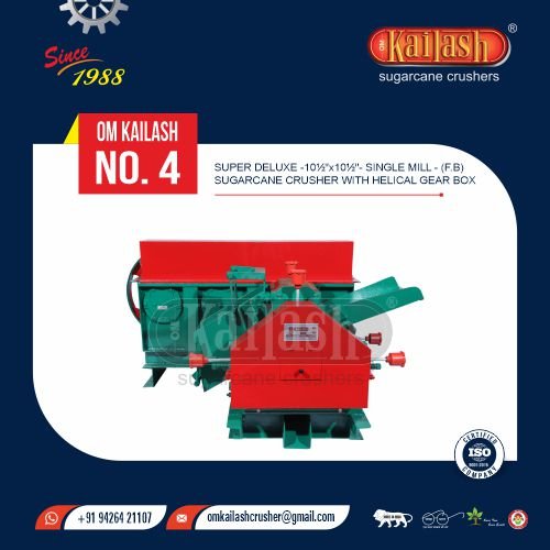 Super Deluxe - 10½" x 10½" - Single Mill - (F.B) Sugarcane Crusher With Helical Gear Box