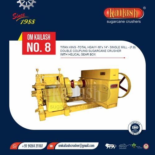 Titan King - Total Heavy - 18" x 14" - Single Mill - (F.B) Double Coupling Sugarcane Crusher With Helical Gear Box